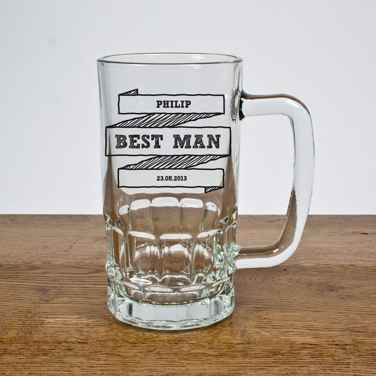 Show him how much you appreciated him being your best man. Personalised with his name this beer glass makes an unique gift. He’ll enjoy a pint on his very own beer glass.