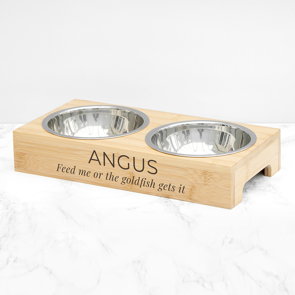 Choose a name of up to 15 characters and a special message of up to 35 characters, and our team of specialists will engrave it onto the bamboo bowl stand, so your pet knows exactly where their food is!