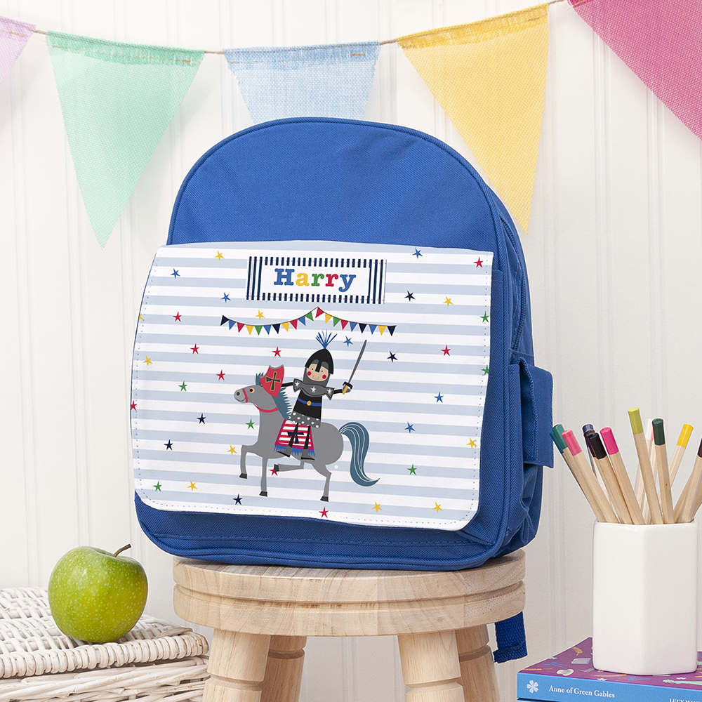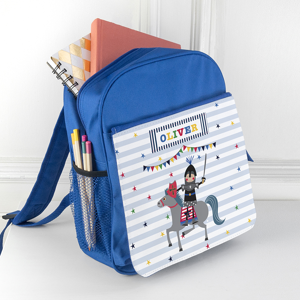 For brave little one tackling a new school setting, treat them to a cool new personalised children’s noble knight rucksack to carry their books around.