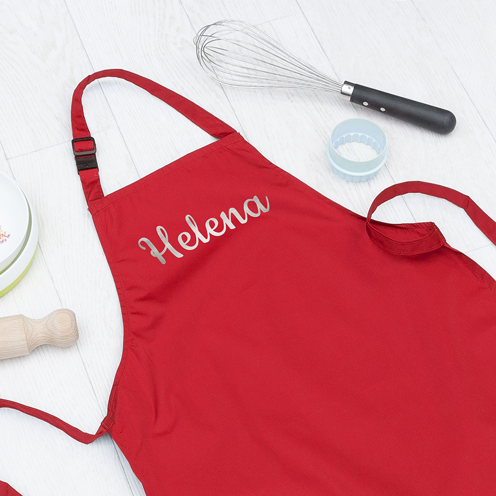 If you’re looking for that perfect present for a little one who loves helping out in the kitchen, then look no further than our stunning personalised children’s red waterproof apron. The ideal gift for a child’s birthday or Christmas. Name: Up to 12 characters Dimensions: Small (Infant: 3-6 Years): 53cm x 43cm x 0.1cm Large (Junior: 7-10 Years): 63cm x 48cm x 0.1cm