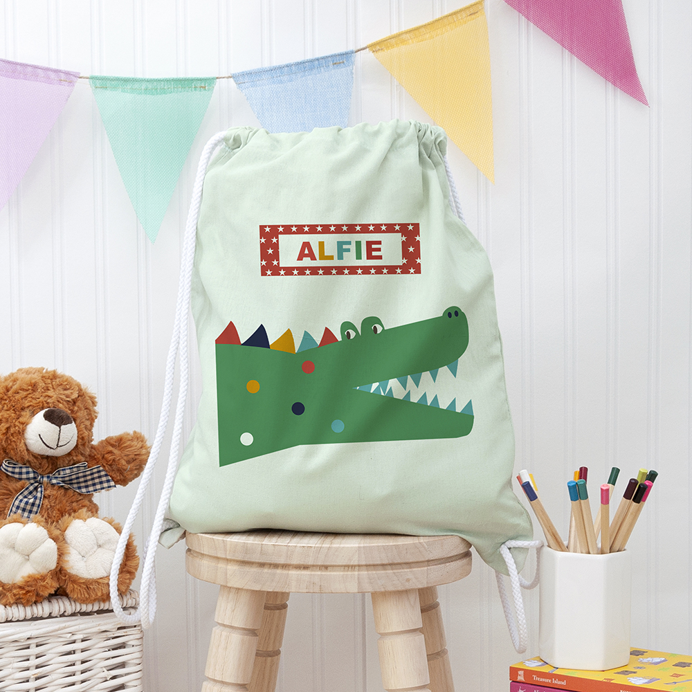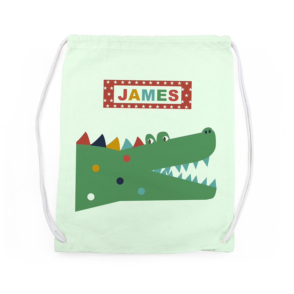 Our adorable personalised crocodile PE kit bag is the perfect birthday, Christmas or back-to-school gift for an animal loving little one in need of a school bag to hold their sports equipment.