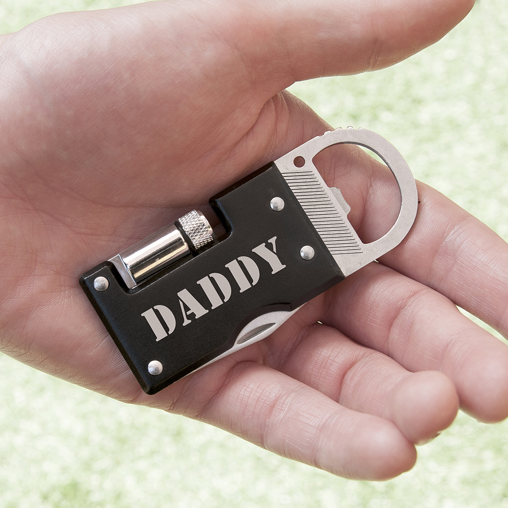 Dad will be prepared for anything with his sleek new Personalised Men’s Utility Bottle Opener! The perfect gift for a DIY dad who wants to relive his scout days. Perfect for dad’s birthday or as a handy and portable Father’s Day gift – he’ll never be without his favourite tools! This multi-tool set features a bottle opener, LED flashlight, knife, and serrated cutter, it is ideal for an on-the-go dad!