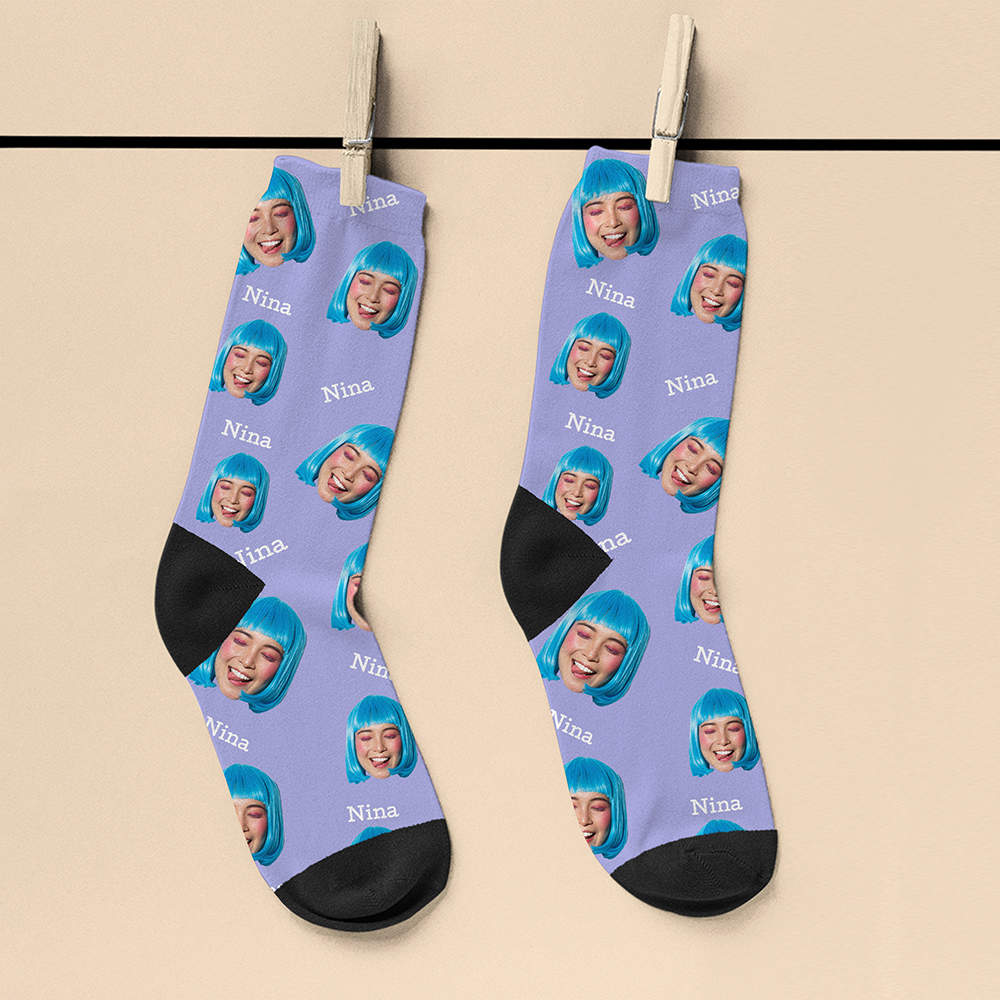 DonÕt blend into the crowd; put your best foot forward with our chic personalised face socks. Whether you’re walking the dog, hitting the gym, or just lounging at home, these unique and special polyester socks are guaranteed to turn heads and spark conversations.
