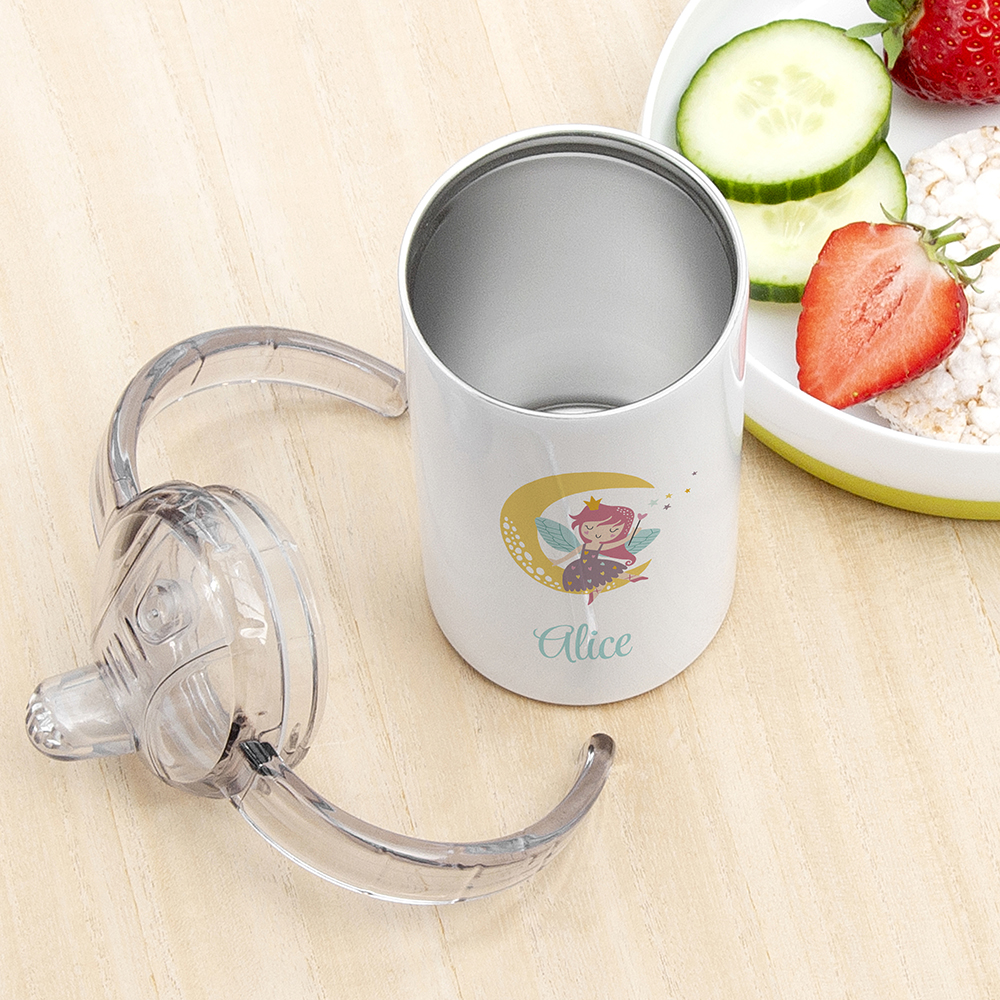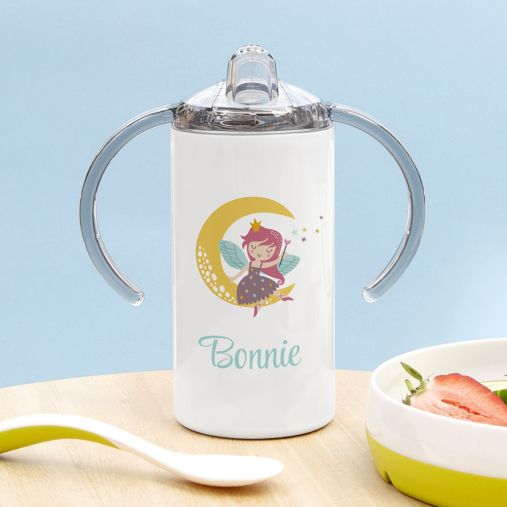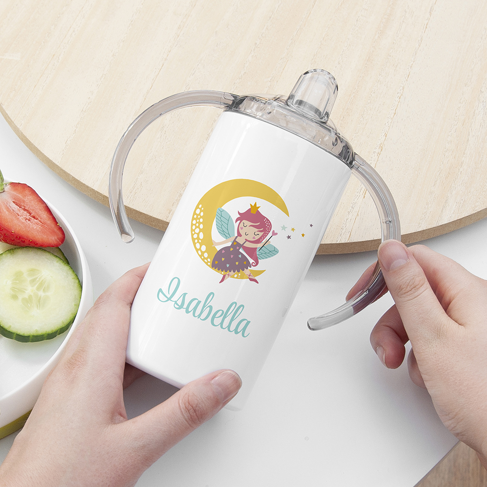 If you are looking for a cute cup for a little one, look no further than our personalised fairy kids sippy cup. This adorable cup is perfect for your little ones to take on the go and features plastic handles which make it easy to grip and hold. The ideal birthday or Christmas gift for that magical child in your life.