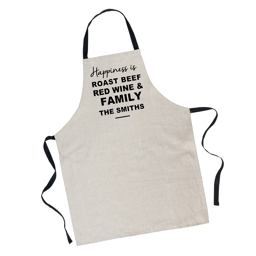 What makes you happy? Whether that’s a weekend lay in, family get-togethers or anything else, celebrate those moments of pure joy with our Personalised’Happiness Is’ Luxury Linen Apron. This sleek and stylish linen apron will make the perfect birthday or Christmas gift for any home cook or master chef. Or you can get it as a super cute couple’s gift, perhaps for a newly married couple who are just starting out on married life. Whoever you get it for, it’s perfect for protecting their clothes from any spills and kitchen mess.