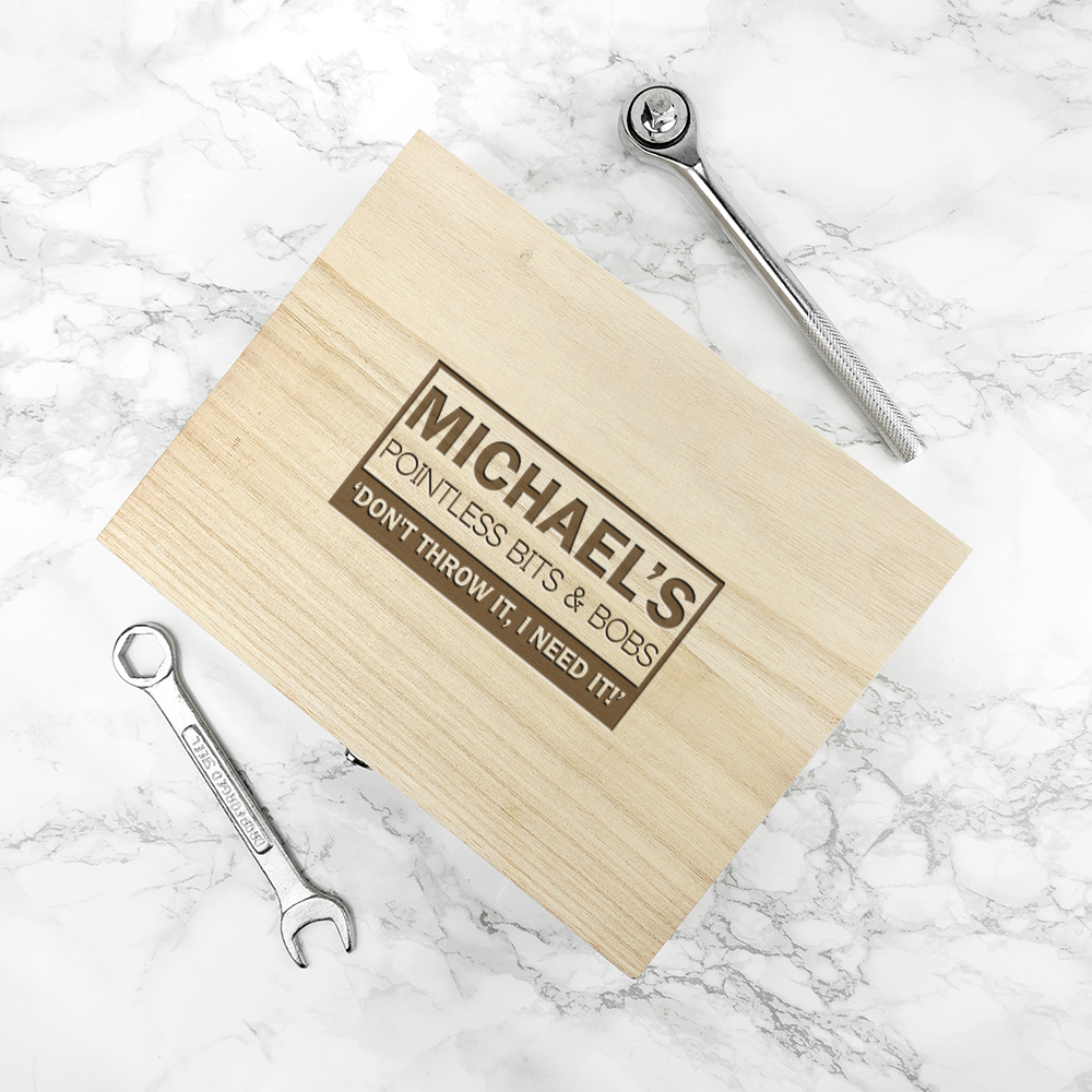 This wooden tool box is perfect for the avid fixer upper engraved with a name of your choice.