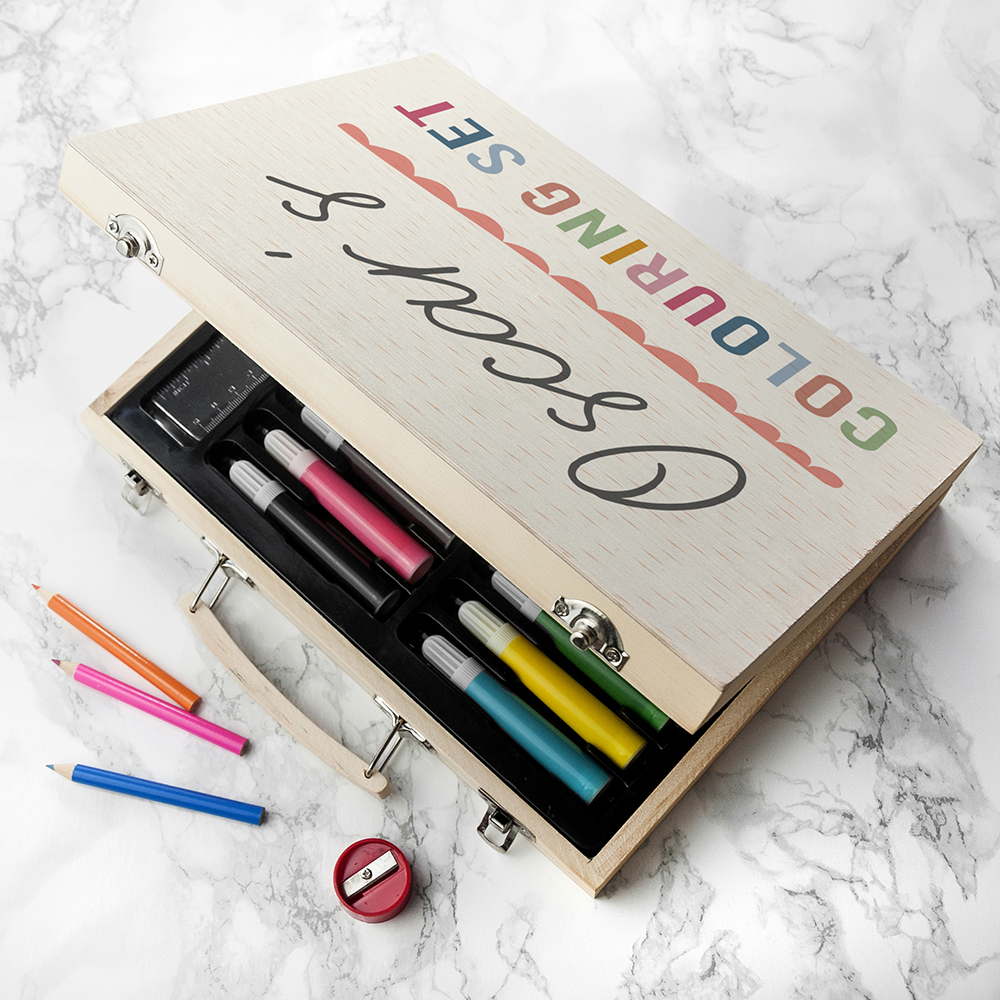 ‘[Name]’s Colouring Set’ comes as standard text on the lid of this sleek wooden colouring set box. Their name is what makes this gift truly special, as it’ll be completely unique to them. It’ll be professionally printed by our expert personalisation team, to create an ultra-meaningful gift that’s sure to hold a special place in their heart.