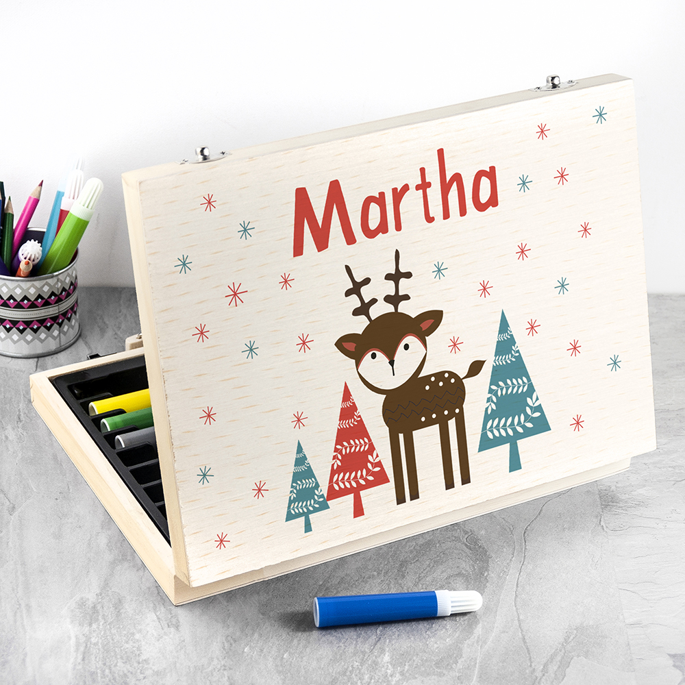 Encourage your child’s artistic talents while celebrating the magic of Christmas with our stunning personalised kid’s reindeer colouring set. The perfect Christmas gift for your artistic little one, this wonderful colouring set combines creativity with festive charm to create an amazing present that your child will love showing off to friends at Christmastime and will use regularly.