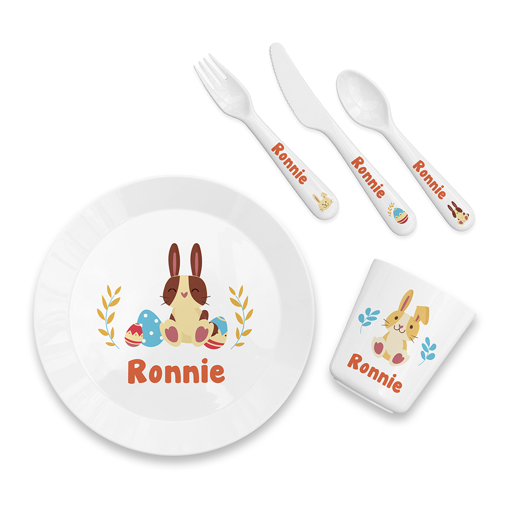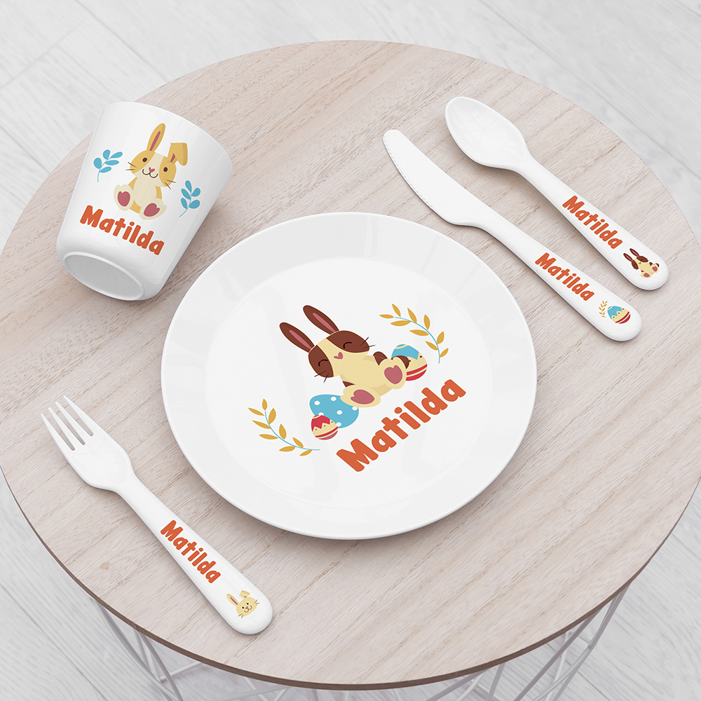 Put a spring in their step with our Personalised Children’s Spring Bunny Dinner Set. A wonderful gift for Easter, this dining set includes a plate, knife, fork, spoon, and cup, making it ideal for everyday use. Each item in the set is printed with adorable bunny and egg illustrations that are sure to bring some seasonal joy to the dinner table!