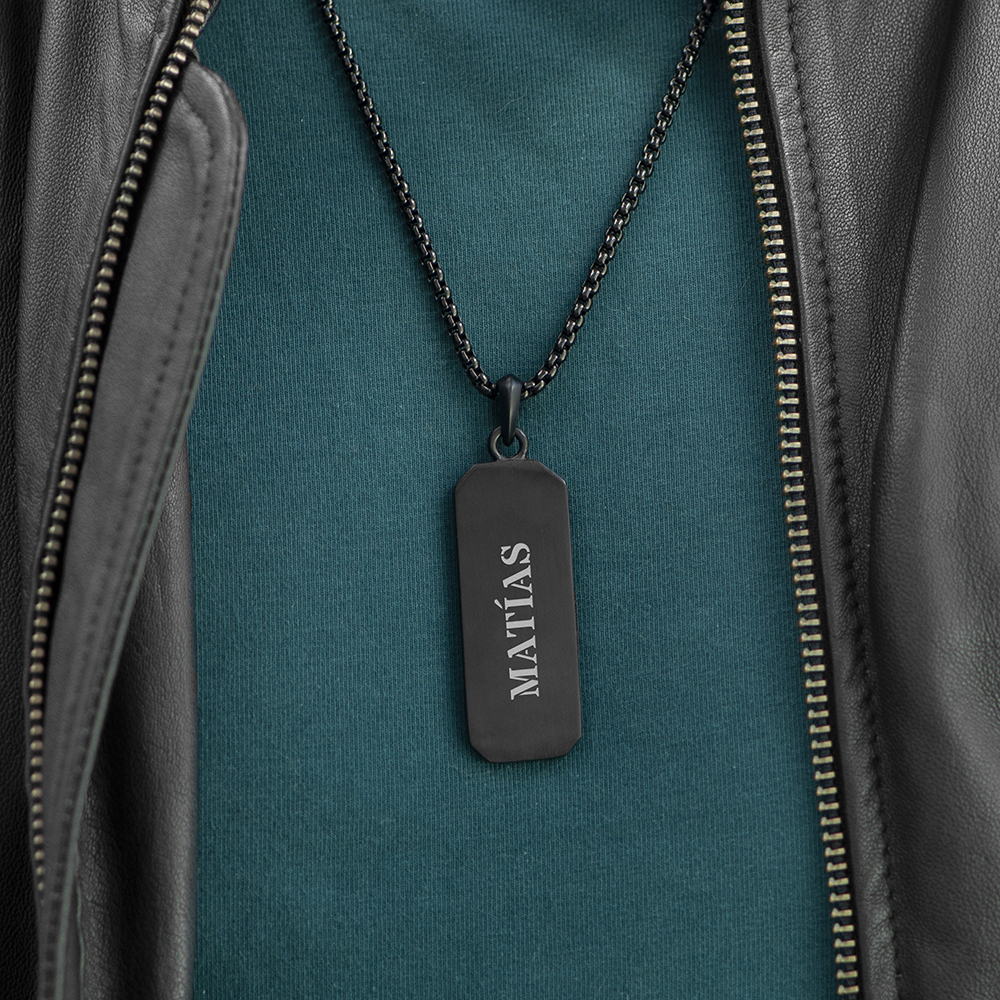 An amazing gift for that immaculately dressed gentleman in your life, he’s sure to love our Personalised Men’s Black Steel Dog Tag Necklace. This necklace is sure to turn heads whenever he wears it. Perfect for any occasion whether he wears it daily or saves it for those special occasions. It’s sure to look great in any setting and stylishly complete any outfit.