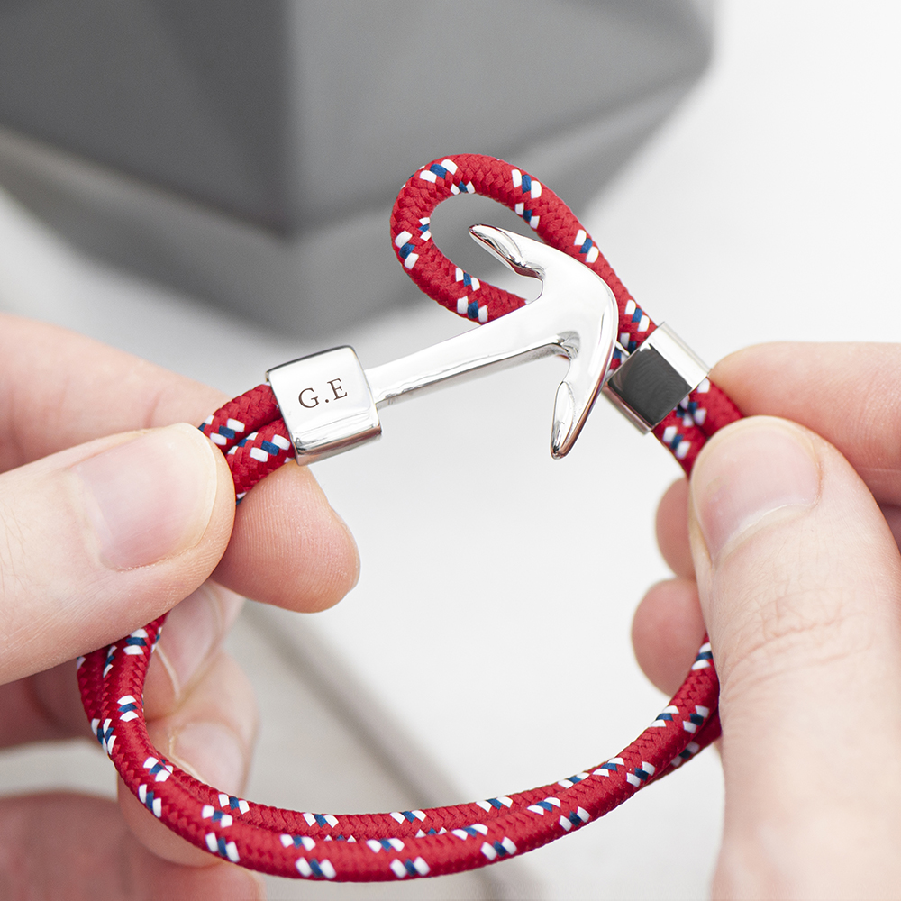 If you’re looking for a nautical themed gift for him, then you’ve come to the right place! He’ll love our ultra-sleek Personalised Men’s Red Rope Nautical Anchor Bracelet! This stunning accessory is hand finished and is sure to wow on nights out. The perfect birthday or Christmas gift for him, he’ll love wearing this unique piece of jewellery.