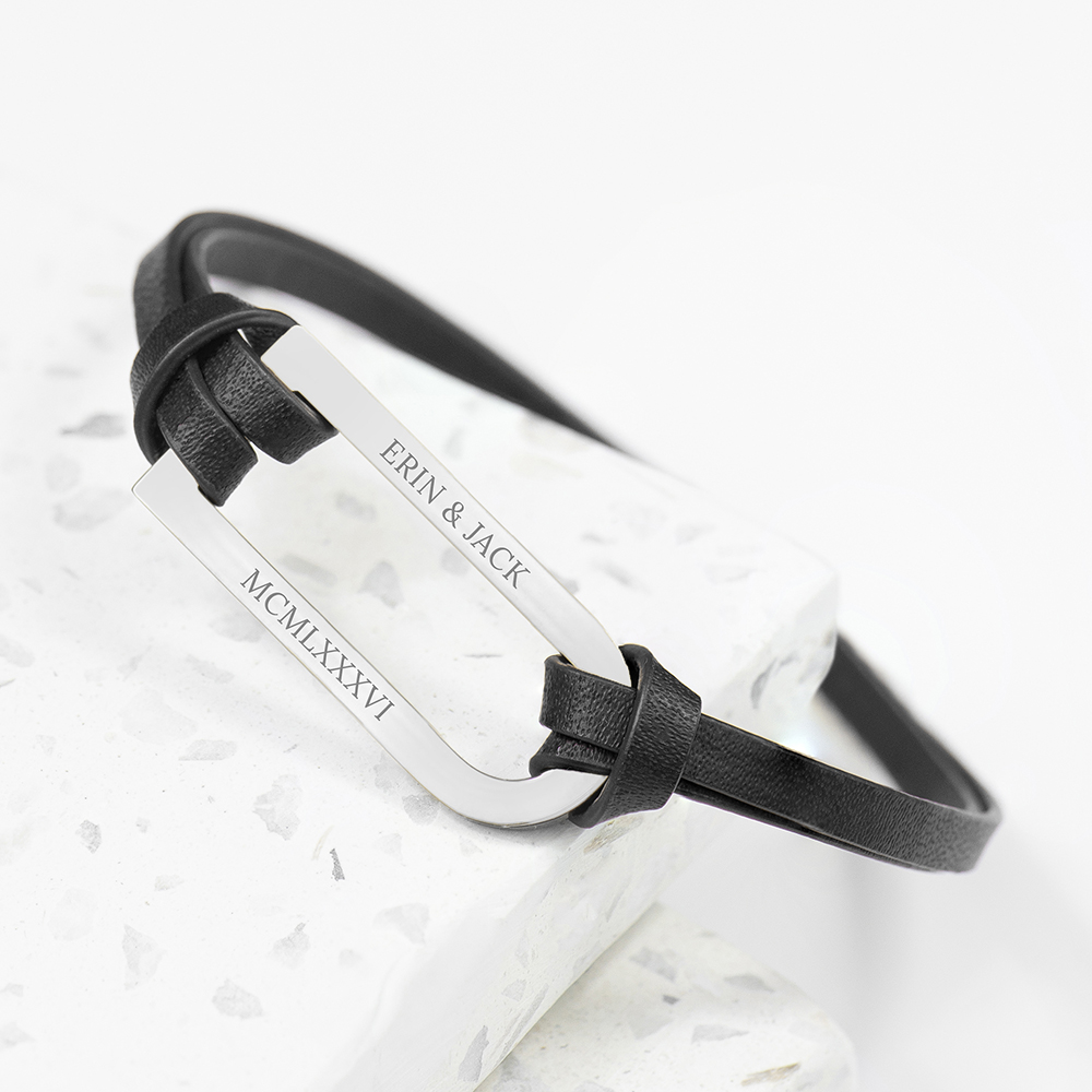 What sets this sleek black leather bracelet apart is the ability to make it truly his. Personalise with a heartfelt message which will be engraved onto the silver bar for everyone to see by our Hertfordshire based team. This will add a personal touch which’ll transform this stylish fashion accessory into a cherished keepsake he’ll rarely be without.