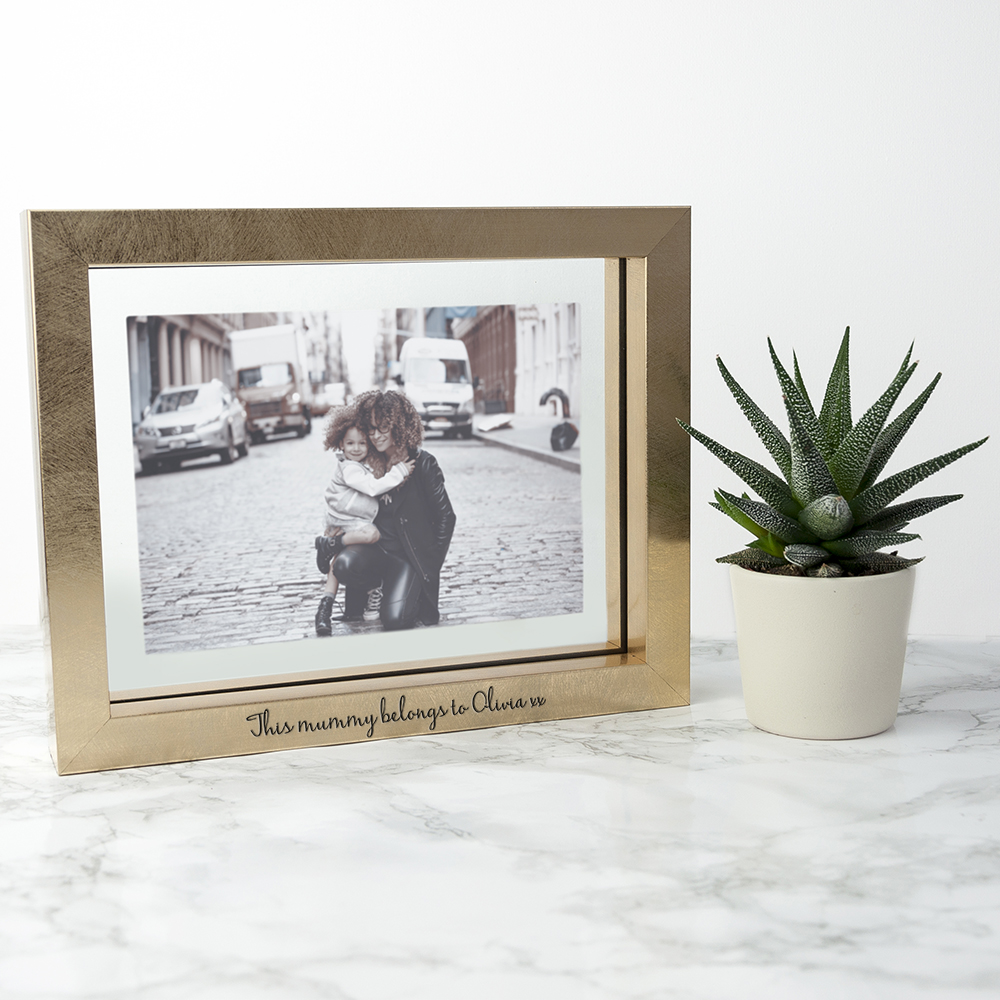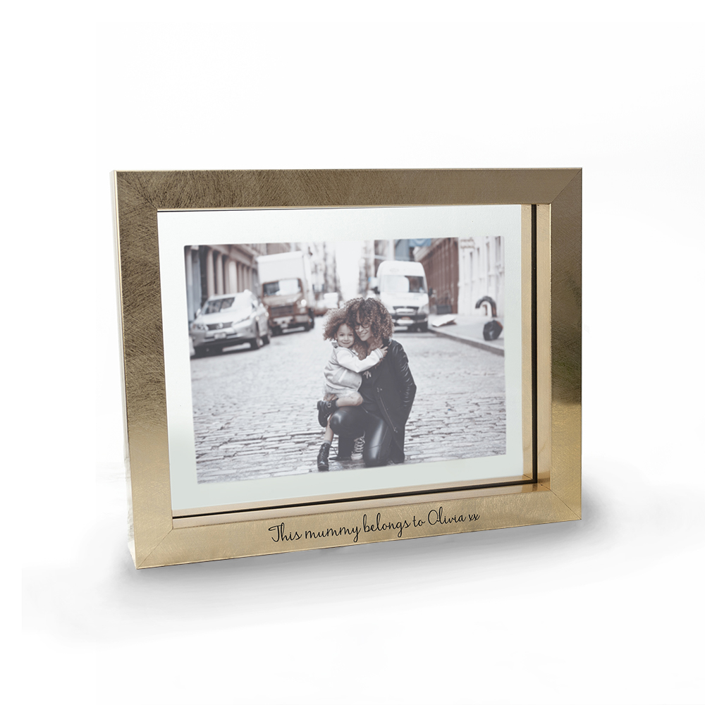 This beautiful gold coloured photo frame is a wonderful gift for her. With a thick metallic boarder this frame is a great way to showcase her most treasured photos. Personalise with a message of your choice. Choose from two different fonts. Size picture is 21 cm x 16 cm