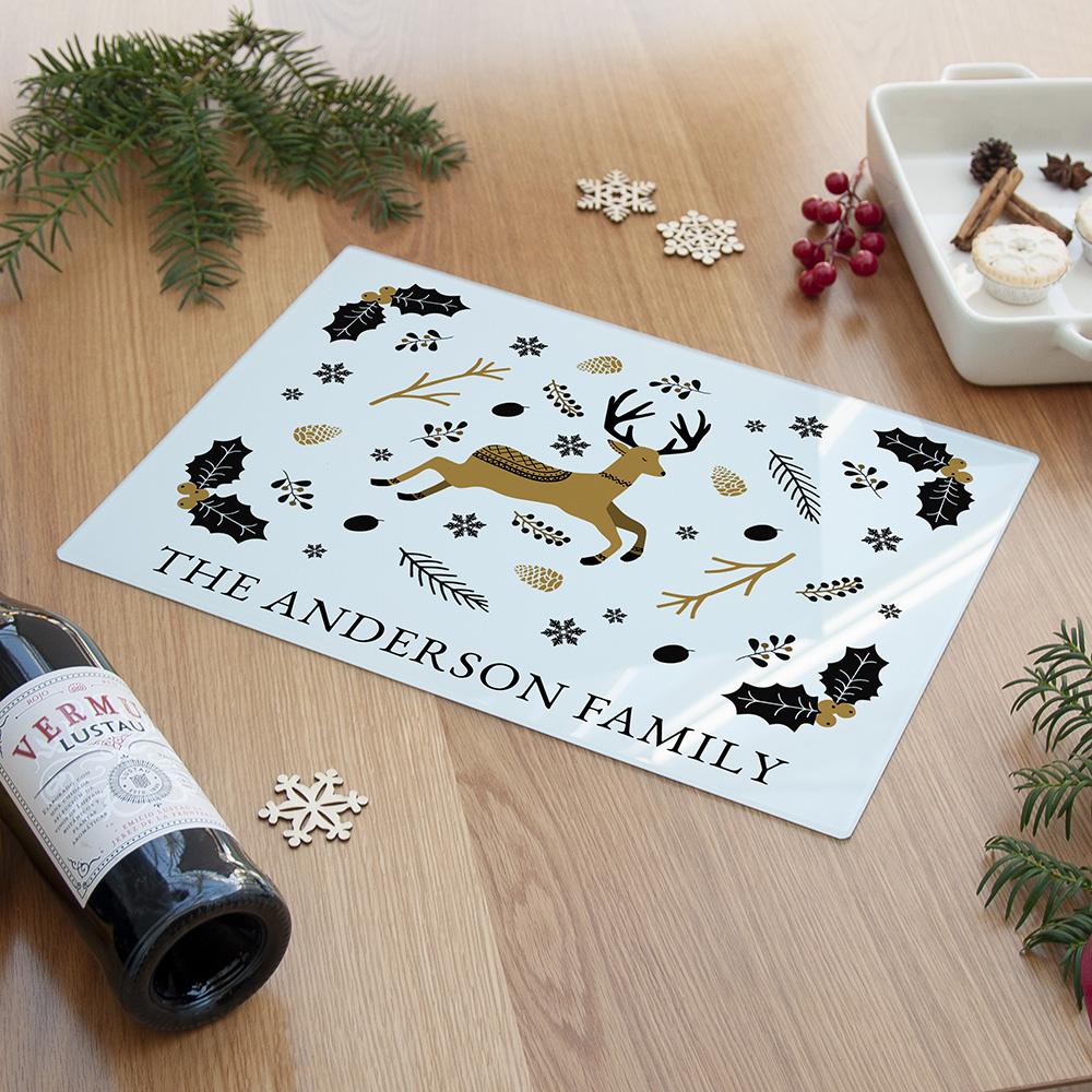 Transport your loved ones to a natural, wintery setting this Christmas with a Personalised Nordic Woodland Glass Worktop Saver.