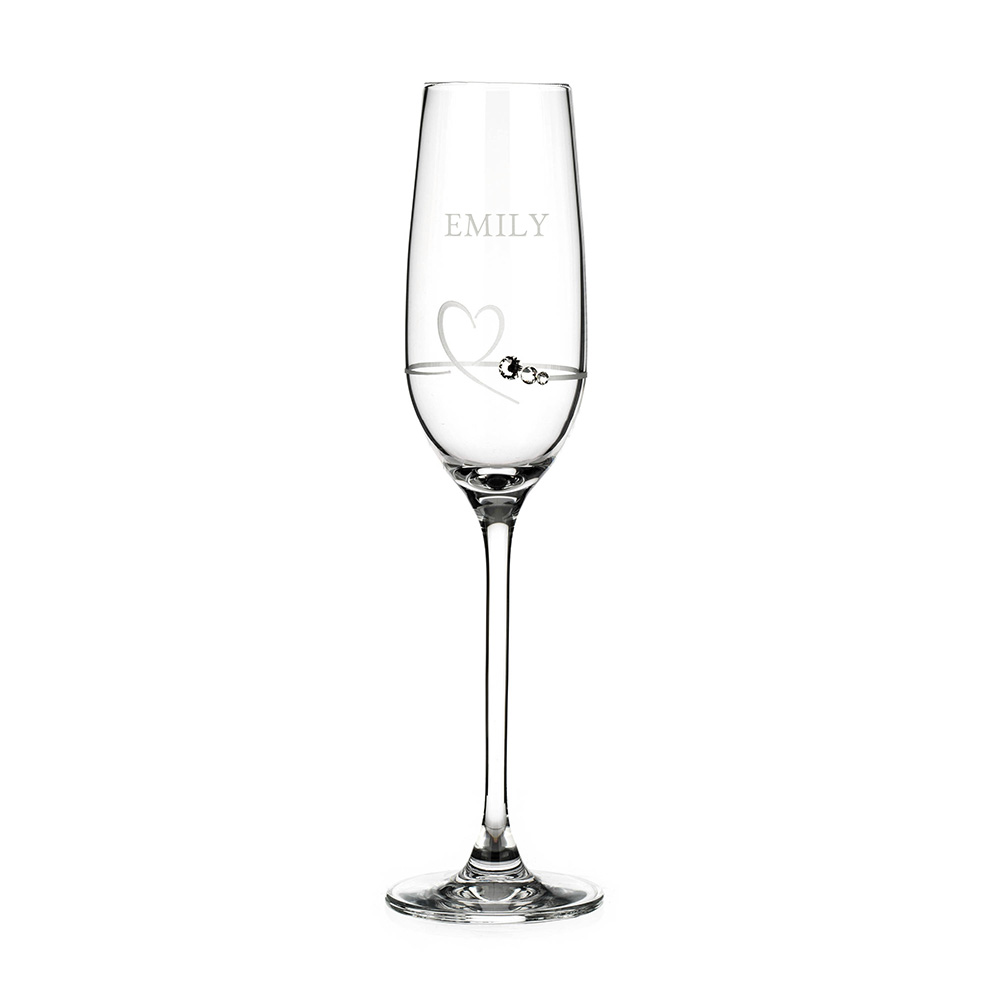 Celebrate special occasions in style with our beautiful hand finished Personalised Petit Champagne Flute with Swarovski Crystals! This stunning piece of glassware would make the perfect romantic Valentine’s Day gift, or a unique gift for that special someone on their birthday. Show your loved one just how much you care with this luxurious flute featuring a gorgeous heart design and three sparkling Swarovski crystals. Enjoy some bubbly together and mark the occasion in style with this premium quality crystal glass champagne flute!