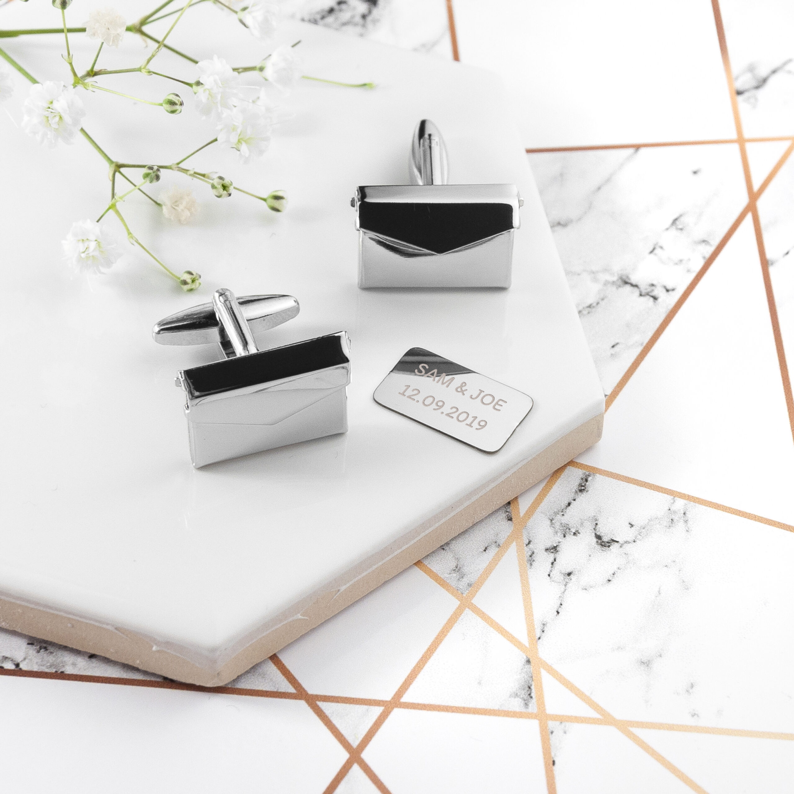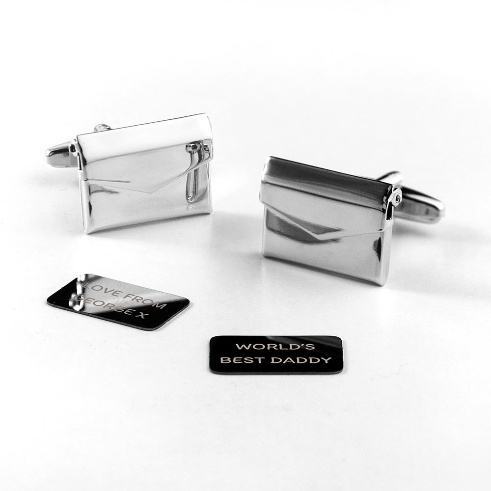 These secret message envelope cufflinks are one of our favourite products. Each silver plated cufflink is crafted in the shape of an envelope which can be opened to reveal a removable ‘letter’ which is engraved with your choice of personalisation. The perfect birthday, Valentine’s or Christmas gift for him, he’ll love wearing it with any outfit!