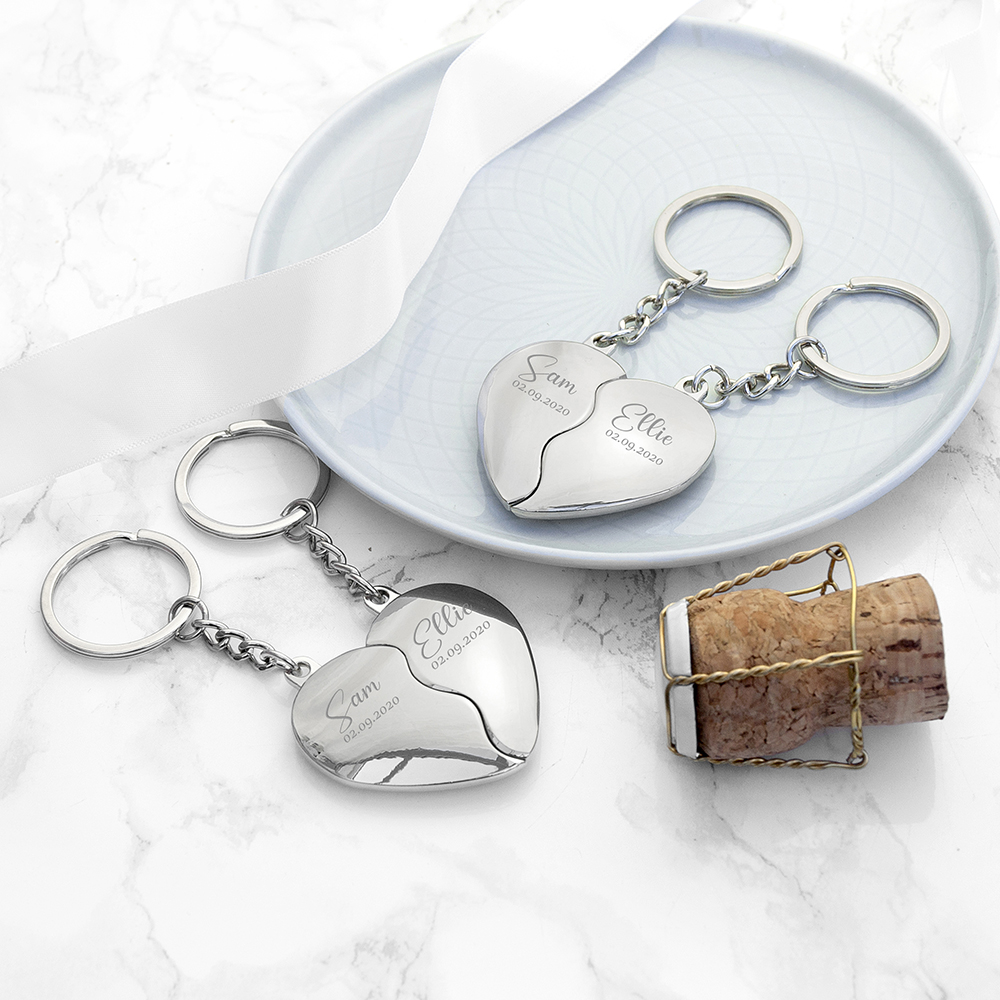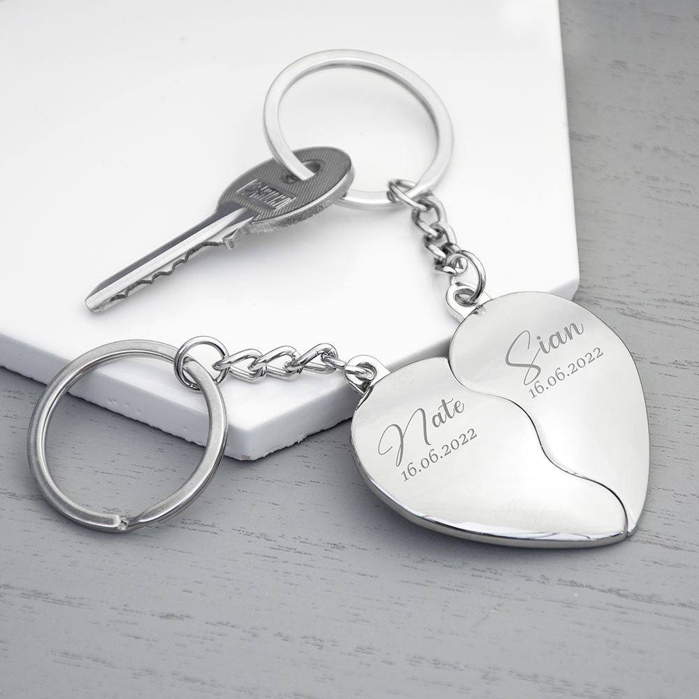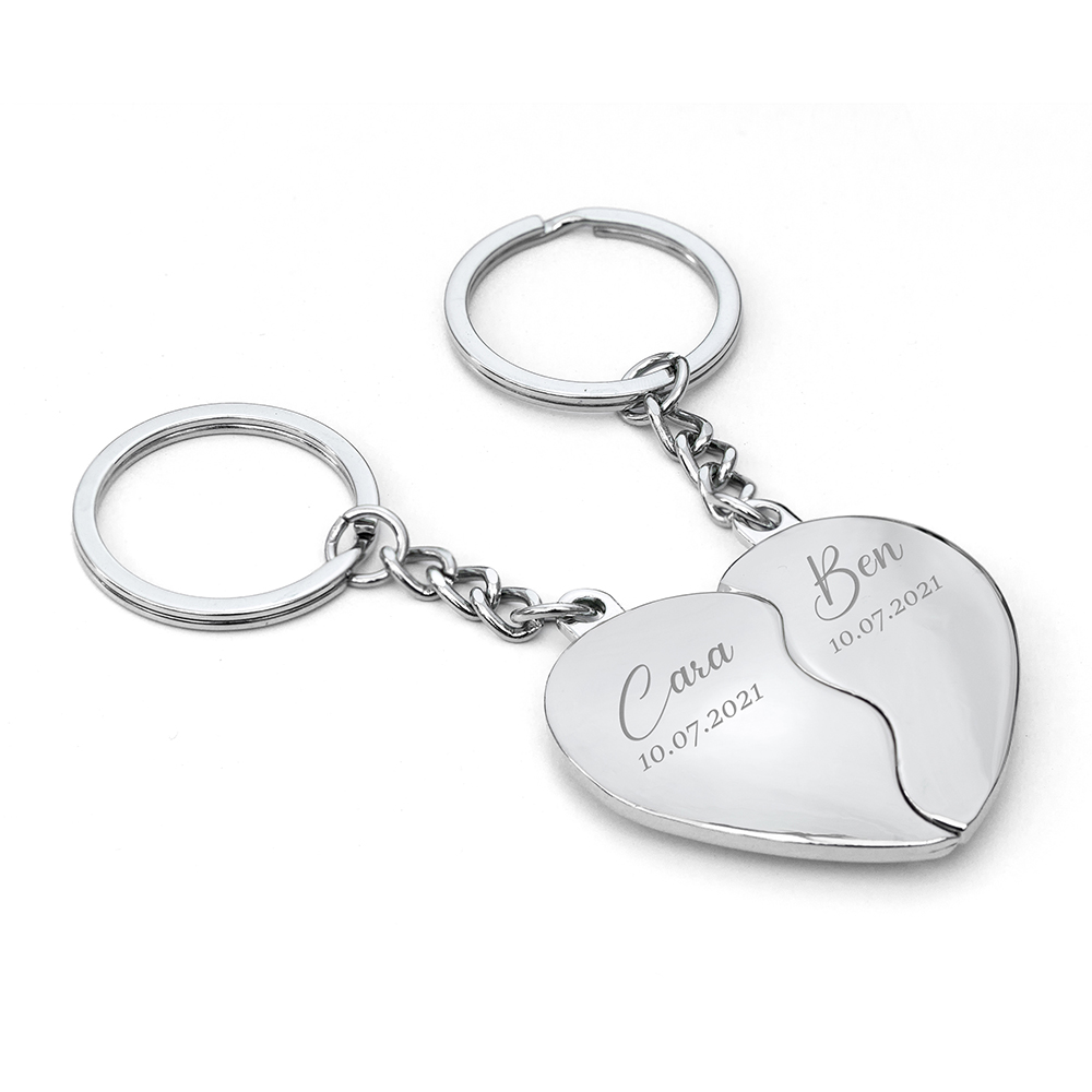 A single heart is split into two polished silver-plated half heart key rings one for you and one for your loved one.
