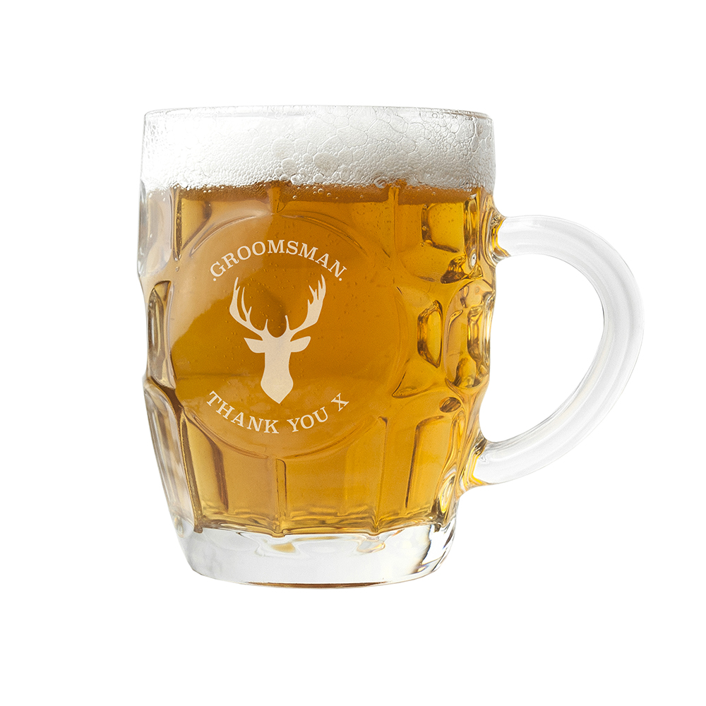 Make sure your loved one knows they’re appreciated with a personalised Stag Dimpled Beer Glass! This glass is perfect for letting your friends and family know how much they mean to you with every sip. This beautiful piece of glassware will make a special gift for your groomsmen to say thank you for making your wedding so special or birthday present for any friend or family member who loves beer.