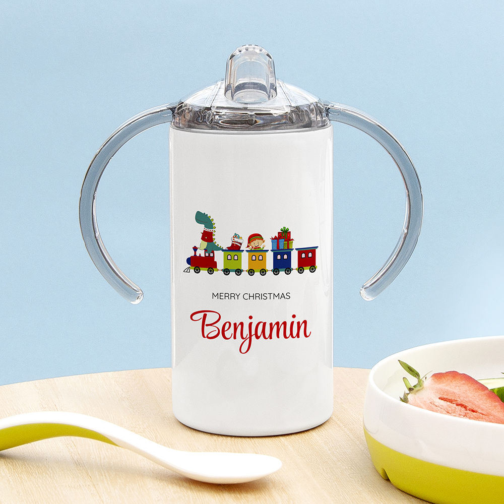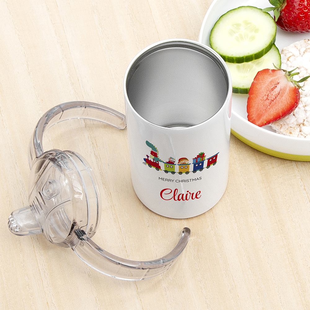 Looking for a unique and special Christmas gift for the kids in your life? Our cute personalised train kids sippy cup will make an ideal Christmas present for any budding train enthusiasts. Made from stainless steel with plastic handles, this adorable cup is strong and safe for little ones to use.