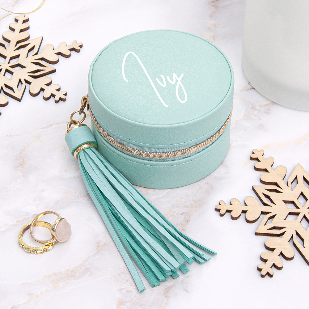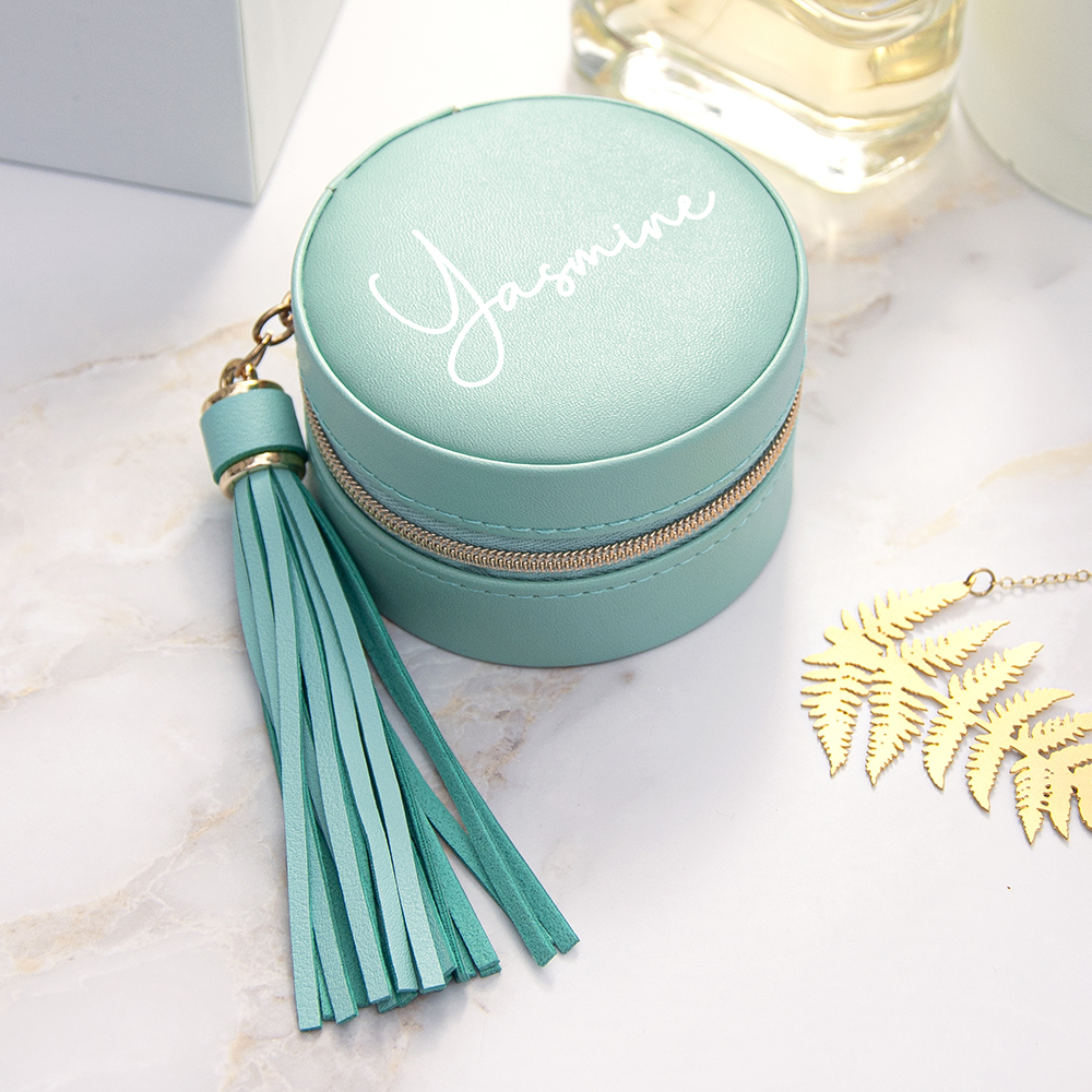 We’ve got the perfect birthday gift for a stylish loved one looking to turn heads on a night out, whilst also keeping their precious jewellery safe when travelling – look no further than our standout personalised turquoise jewellery case with tassel. Your loved one is bound to show off this amazing jewellery case, which is adorned by a beautiful tassel, to all her friends – don’t be surprised if others get their own magnificent jewellery case too as a result!